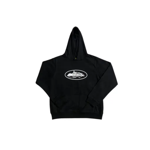 Corteiz Alcatraz Hoodie Black With White Monogram