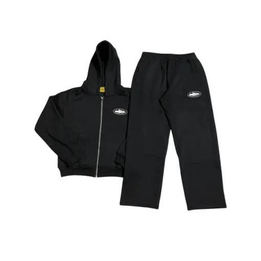 Corteiz Alcatraz Island Puff Print Tracksuit Black