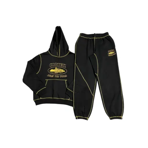 Corteiz Alcatraz Tracksuit Black Yellow Stripe