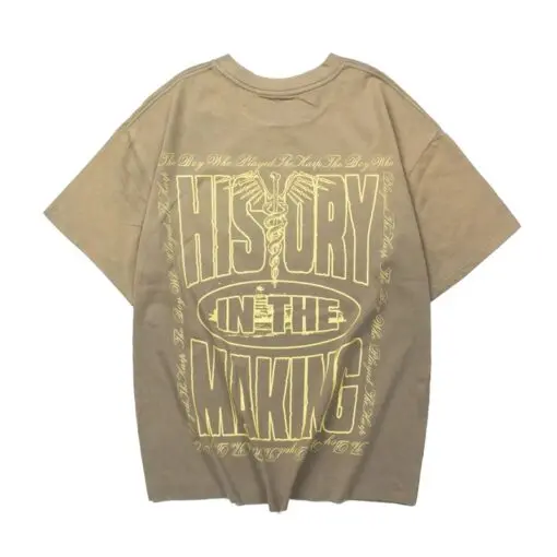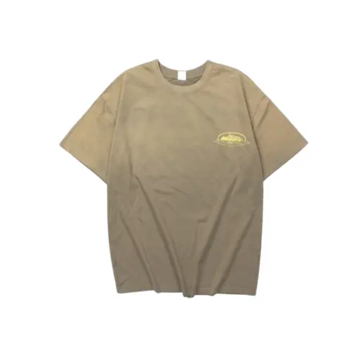 Corteiz Devil’s Island Graffiti Print Casual Hip Hop Retro Washed Distressed Short Sleeved T Shirt Khaki