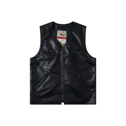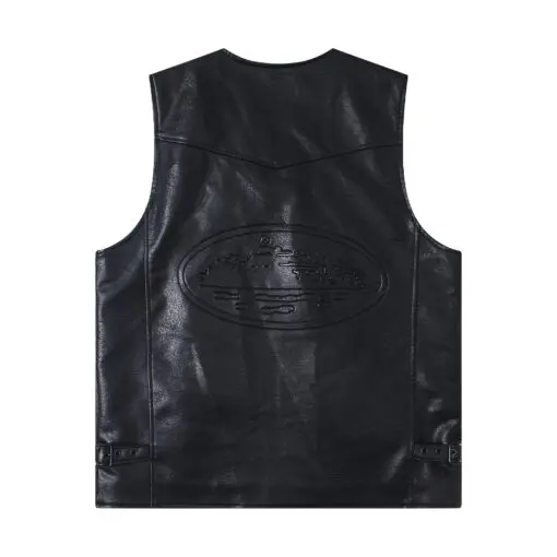 Corteiz Devil’s Island Retro PU Leather Vest Jacket Black