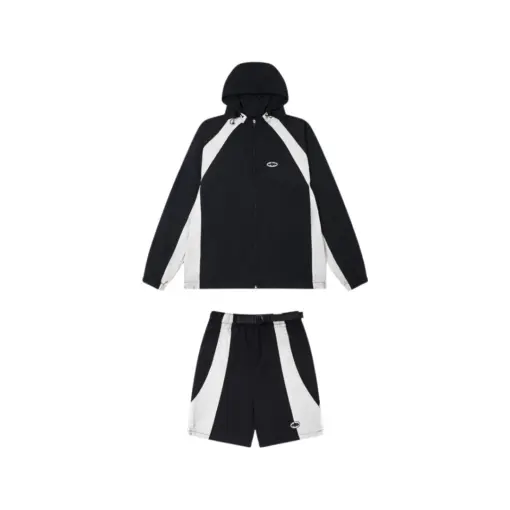 Corteiz Spring Windbreaker Jacket Shorts Set Black Gray