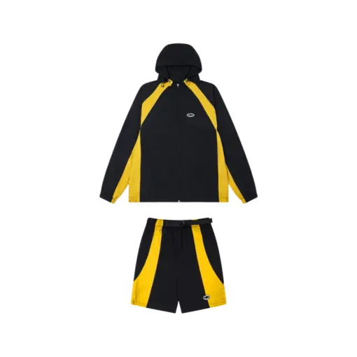 Corteiz Spring Windbreaker Jacket Shorts Set Black Yellow