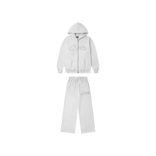 Corteiz Thick Stitch Allstarz Zip Hoodie Matching Pants Gray