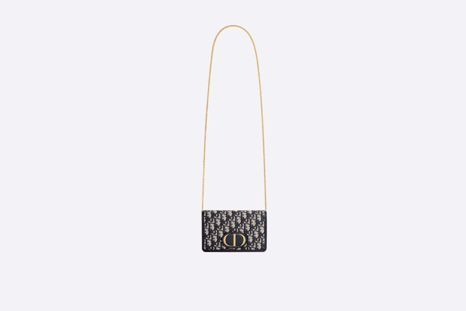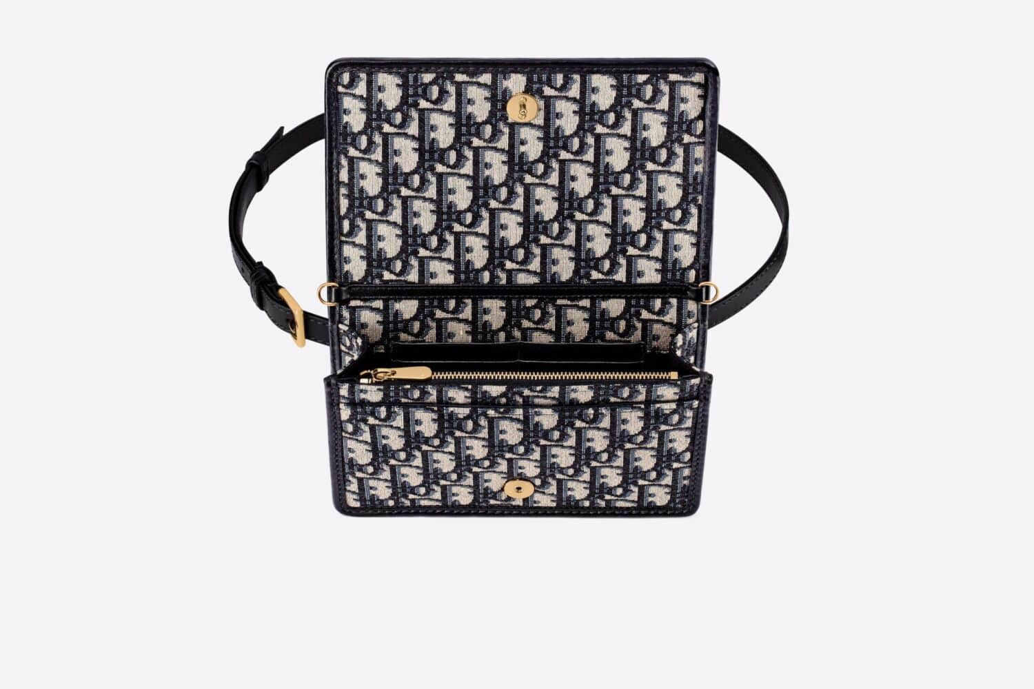 The versatile 2-in-1 tote bag with the blue Dior Oblique motif features a “CD” detail on the front that captures the iconic style of the 30 Montaigne line. Unique interior compartment includes four card slots, one zip pocket, and two patch pockets. The piece can be worn as a fanny pack, slung over the shoulder, crossed or as a clutch.