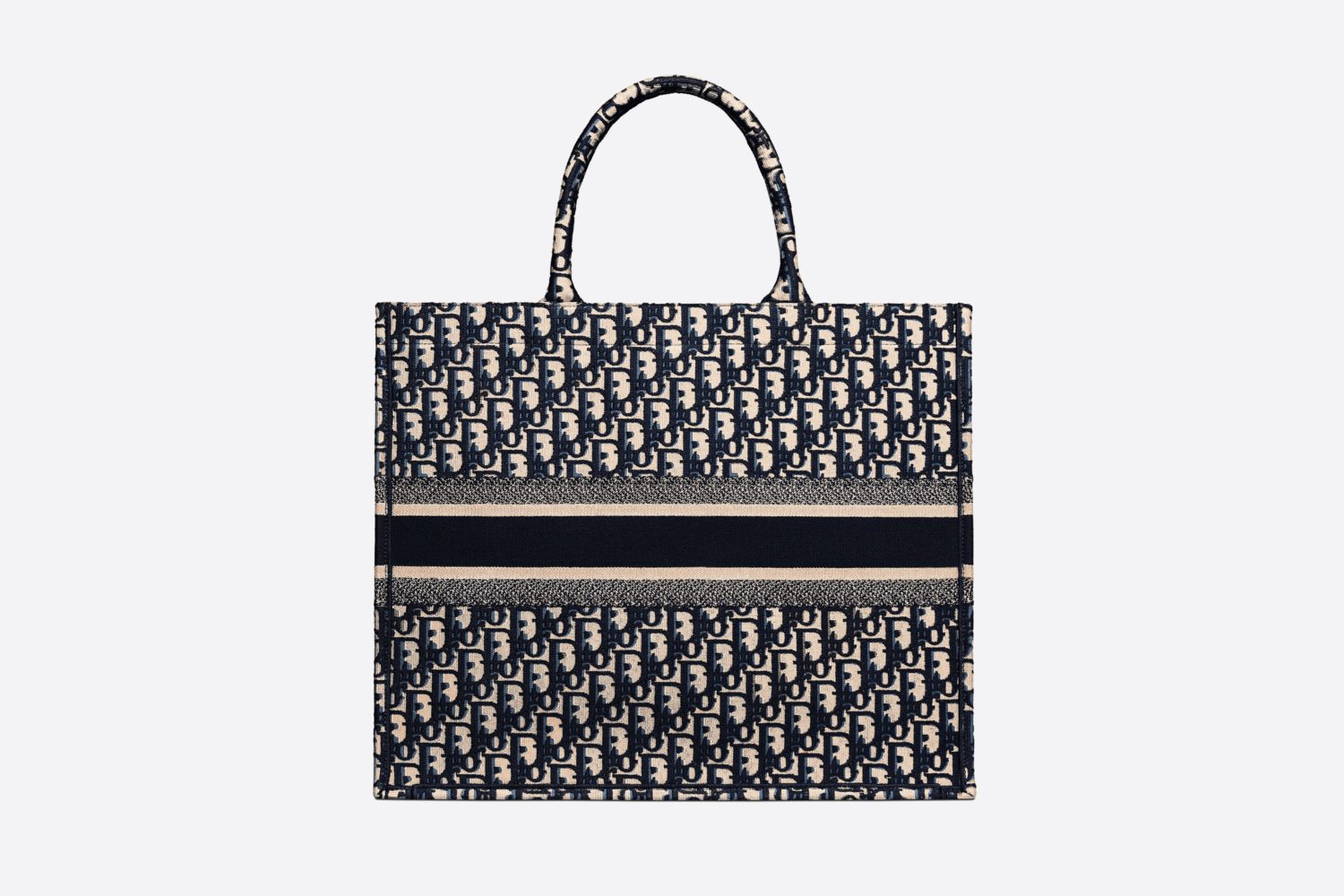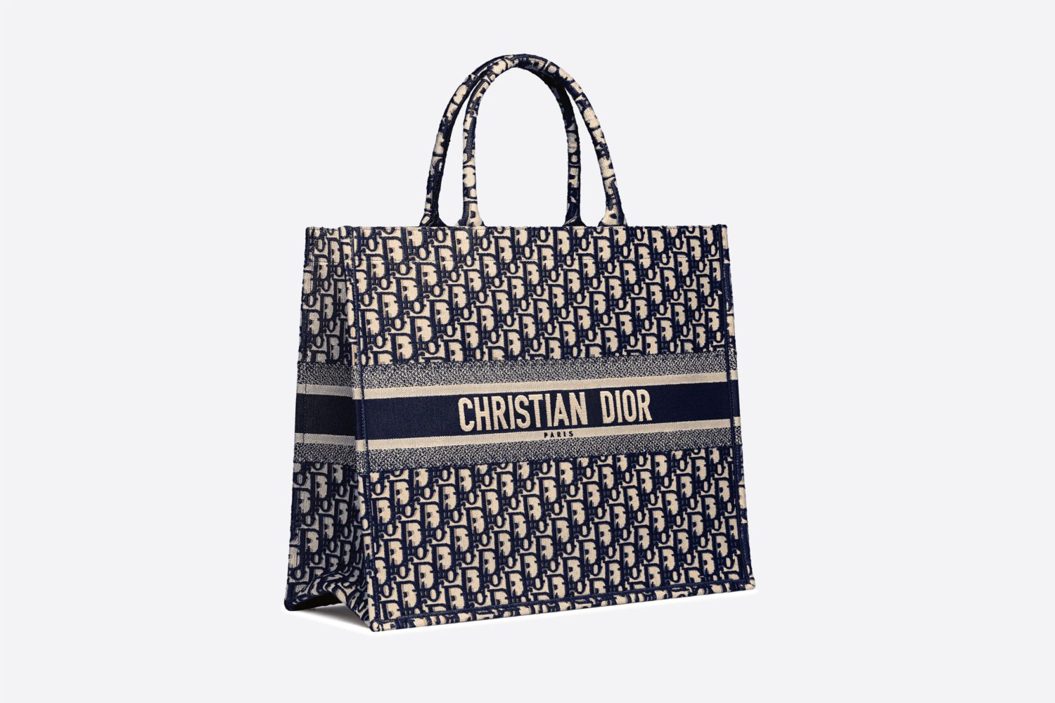 The Dior Book Tote, an original creation signed by Maria Grazia Chiuri, artistic director of Christian Dior, is already a classic of the House. This model, fully embroidered with the iconic blue Dior Oblique motif and with the Christian Dior signature on the front, is designed to carry all your everyday essentials. This carrycot is a good example of Dior savoir-faire and can be combined with other accessories, such as the Mitzah scarf.