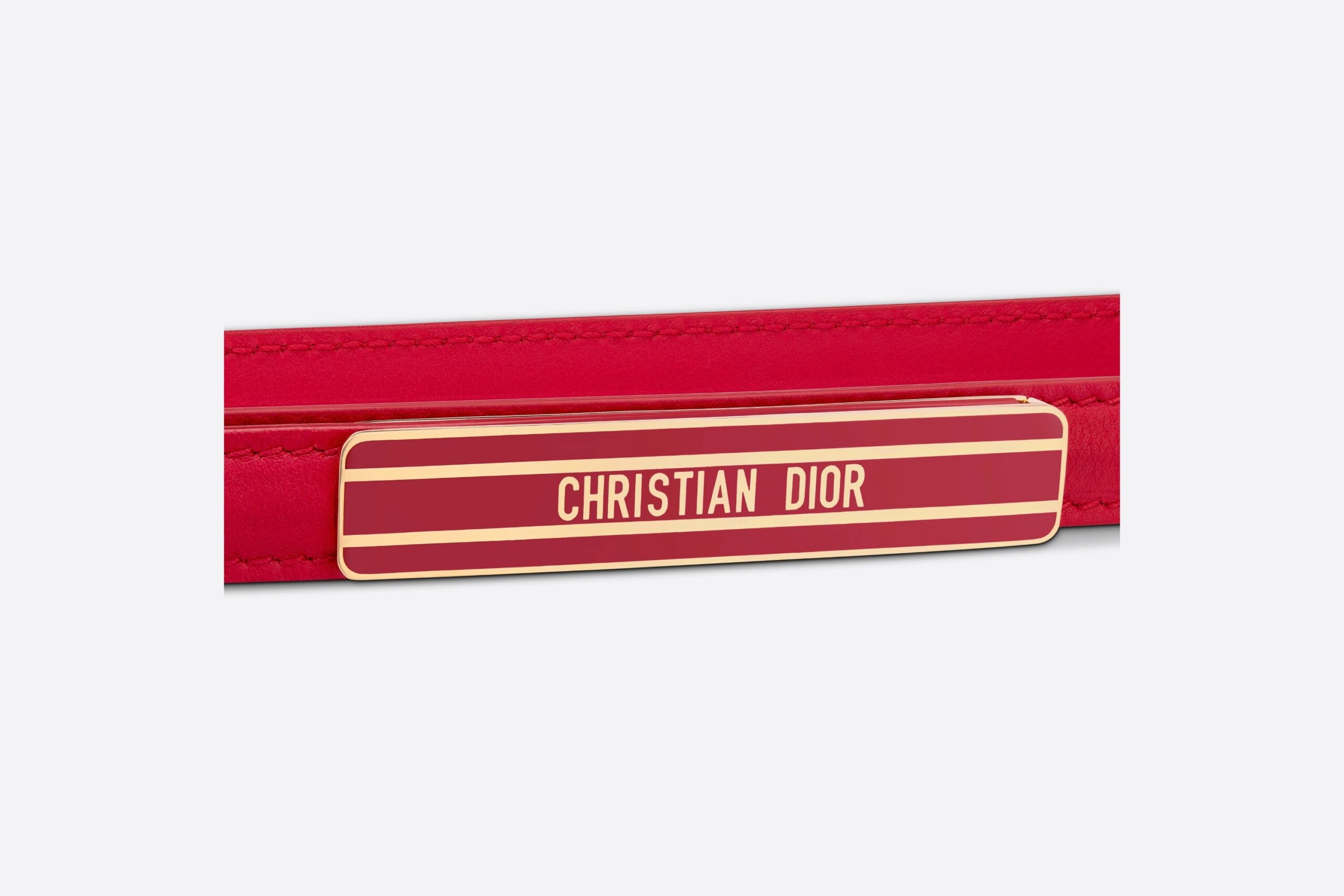 This season’s new Dior-ID belt is a refined and elegant accessory. It is crafted from smooth raspberry calfskin and features an enamel buckle with a shiny gold metal “CHRISTIAN DIOR” signature. The delicacy of the design will subtly sublimate a Bar jacket or a dress.