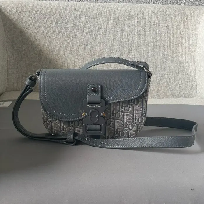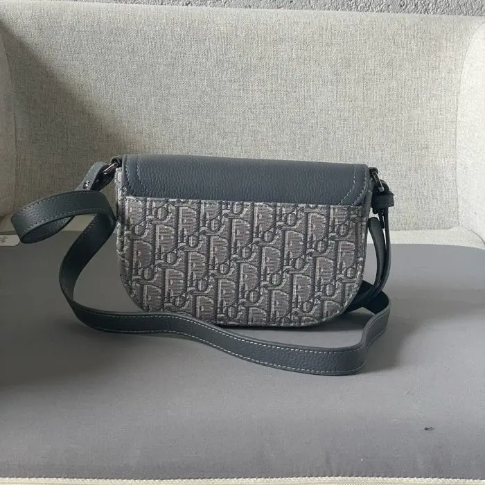 Dior Mini Oblique Saddle Buckle Messenger Bag Grey