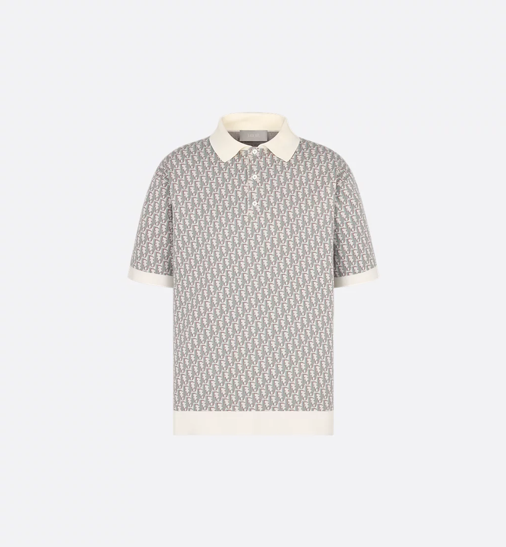 Dior Oblique polo shirt Cotton jacquard in white, blue and brown