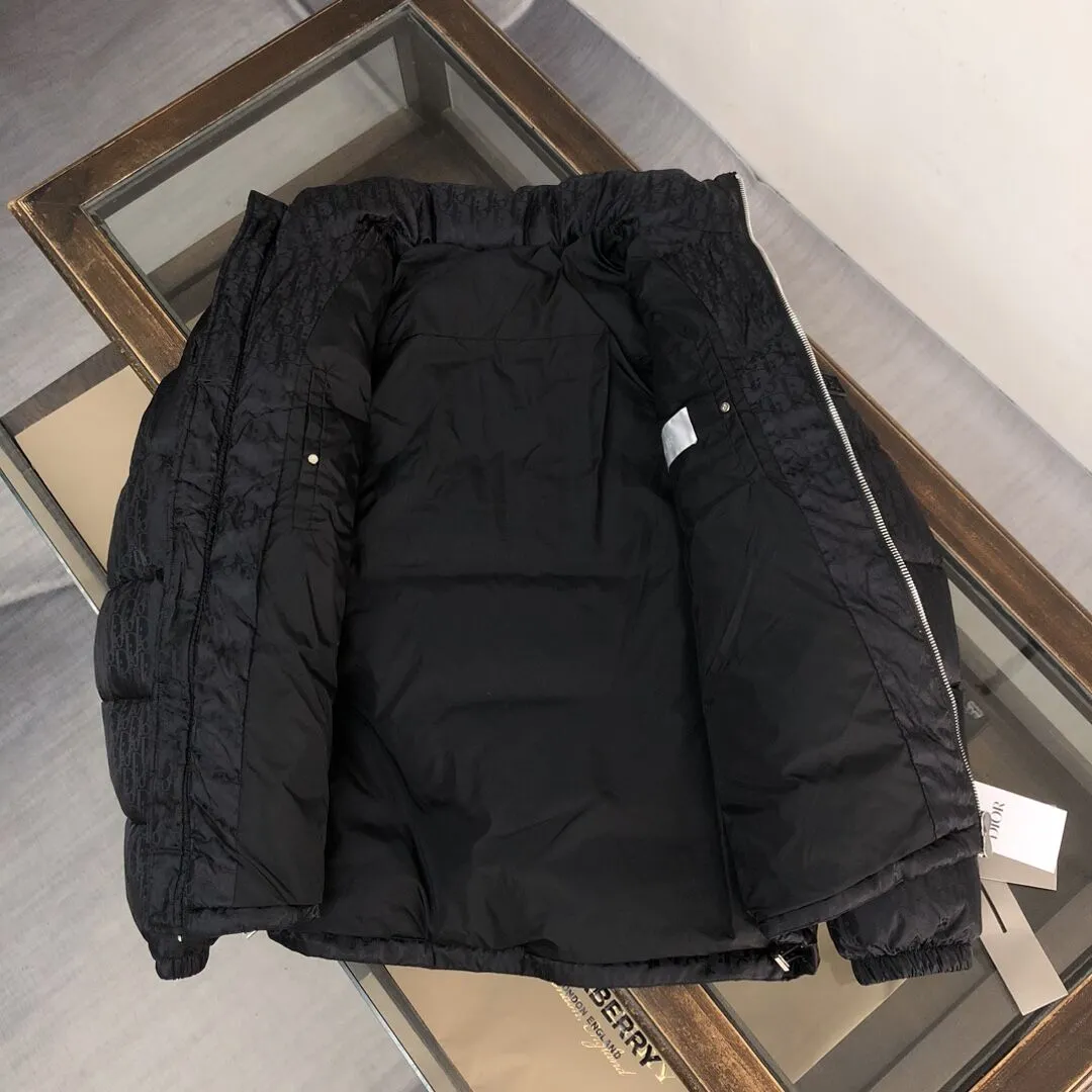 How do I clean and maintain my christian dior puffer jacket? To preserve the loft of the down and the integrity of the Oblique jacquard, we recommend professional dry cleaning only. For minor surface spots, use a specialized luxury fabric cleaner. Always store your down jackets in a cool, dry place on a wide-shoulder hanger to maintain the structure.