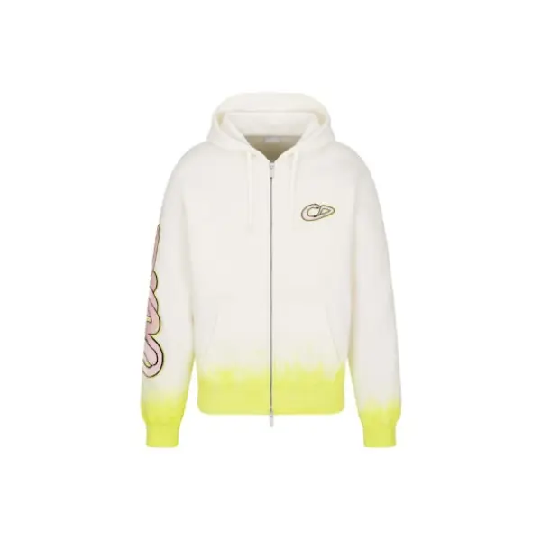 Dior x KAWS Hooded Sweatshirt White and Yellow Cotton Fleece