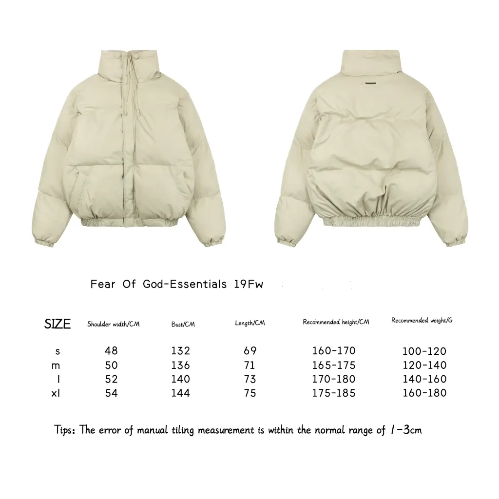 Are your Fear of God Essentials jackets authentic or replicas? We guarantee that every Fear of God Essentials Puffer Jacket we sell is 100% authentic. Each item arrives with original internal labels, verified branding, and house-standard packaging, reflecting the superior craftsmanship and high-end design associated with the Fear of God label.