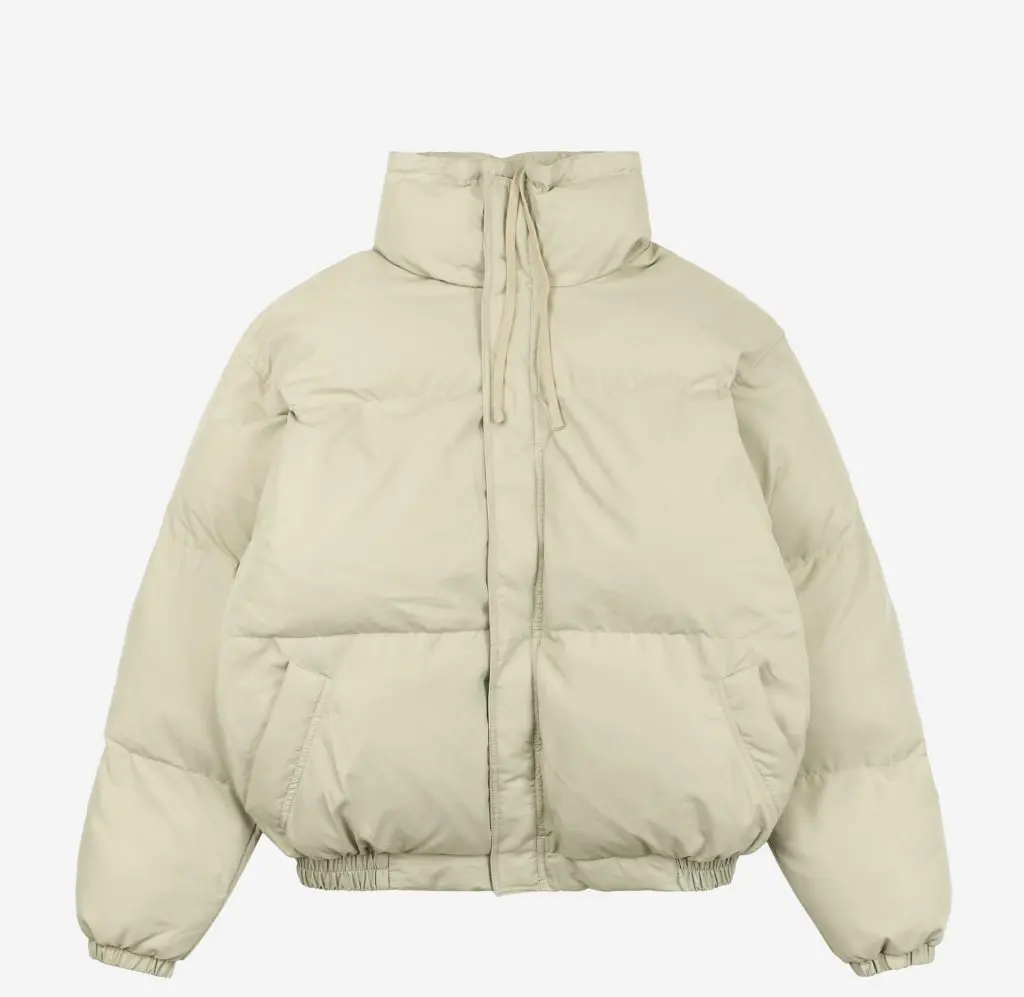 Are Fear of God Essentials Puffer Jackets true to size? The white Puffer Jacket is intentionally designed with a modern, oversized, and boxy fit. We generally recommend sizing down one full size if you prefer a more traditional silhouette. If you want the signature high-fashion puffer jacket men look with plenty of room for heavy layering, stay with your usual size.
