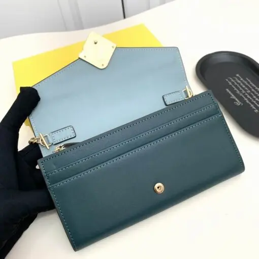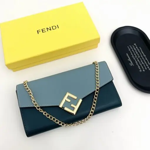 Fendi FF Diamonds Continental Wallet with Chain in Teal Blue & Grey