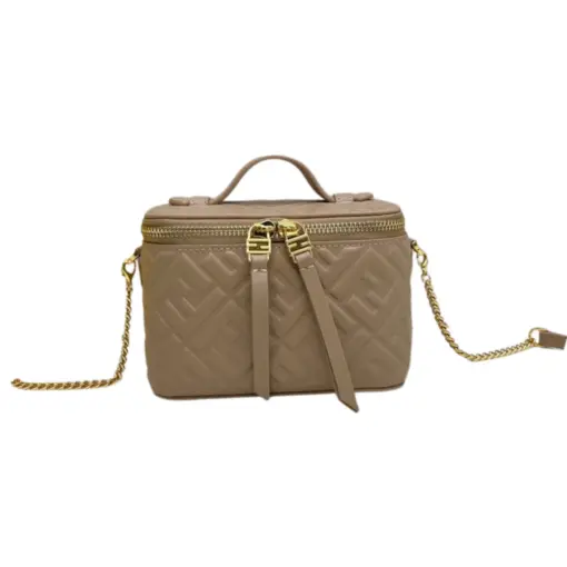 Fendi Vanity Mini Handbag Beige Nappa Leather Embossed FF Motif