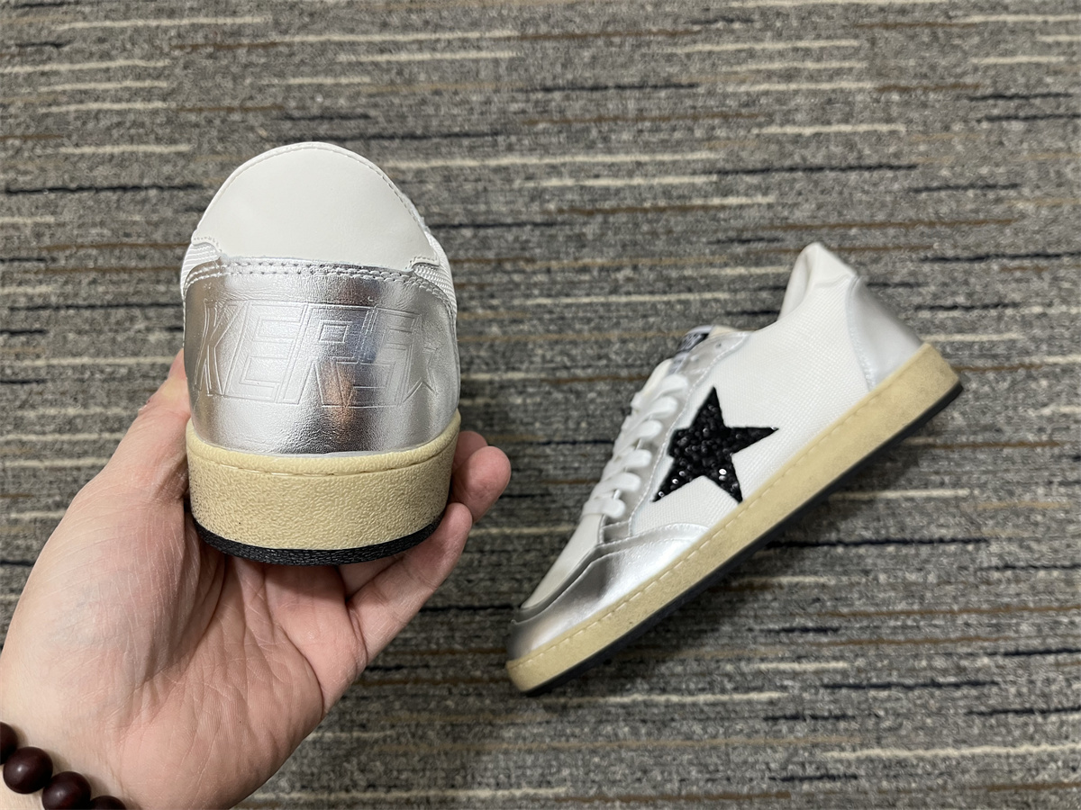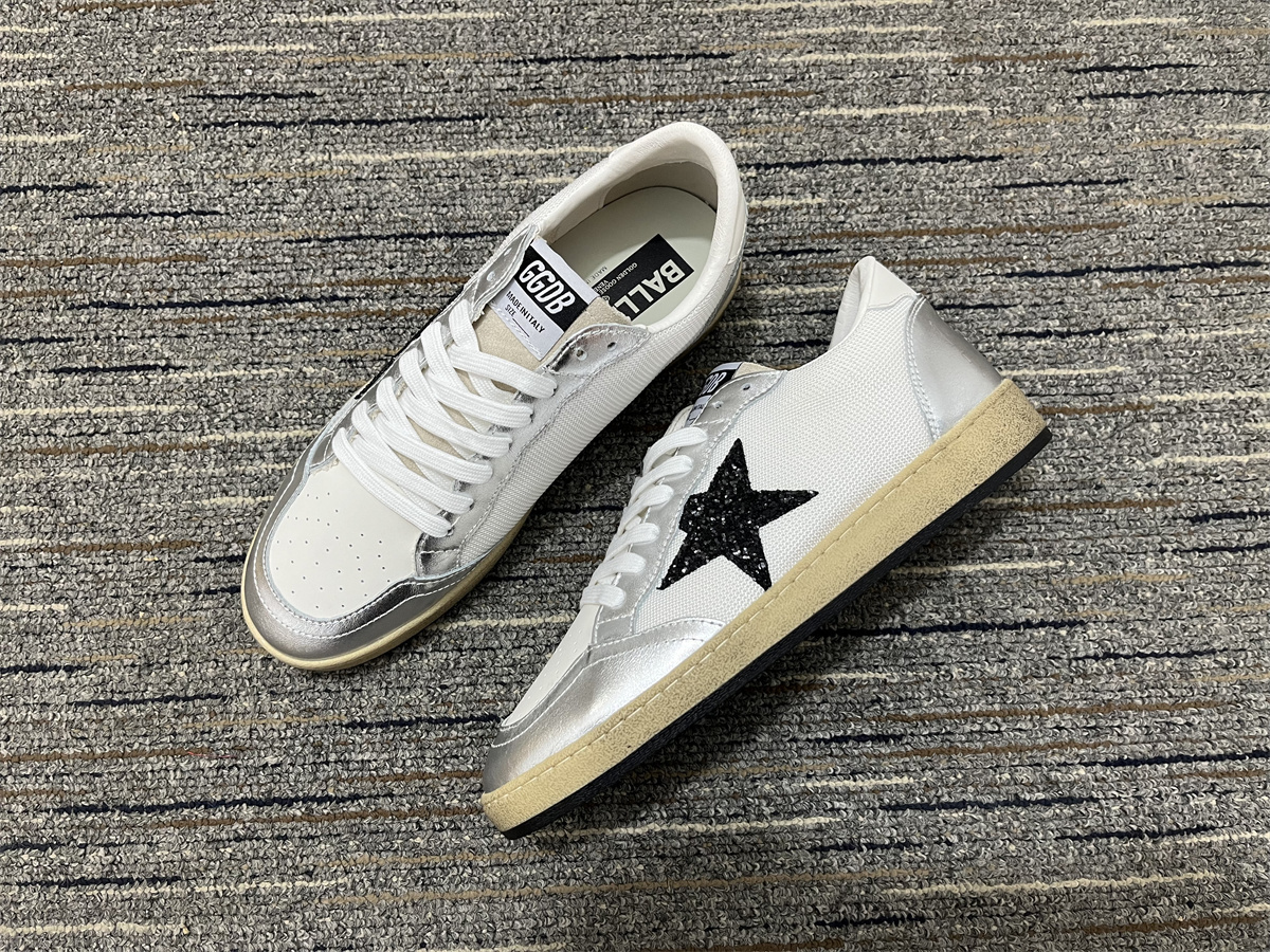 Golden Goose Ballstar Glittered Leather Sneakers White/Silver