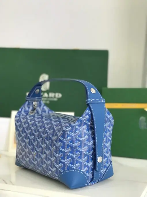 Goyard Boeing 25 Toiletry Crossbody Messenger Bag Goyardine Canvas Leather Trim Blue