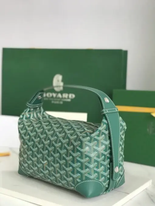 Goyard Boeing 25 Toiletry Crossbody Messenger Bag Goyardine Canvas Leather Trim Green