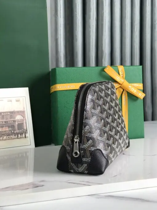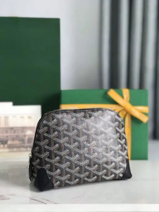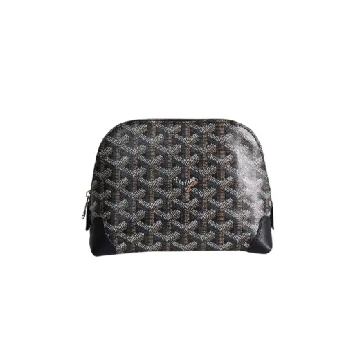 Goyard Vendome Cosmetic Pouch Bag Goyardine Canvas With Leather Trim Black