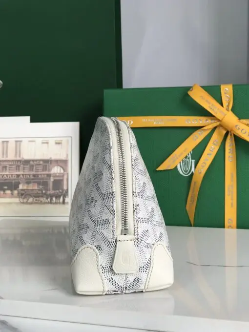 Goyard Vendome Cosmetic Pouch Bag Goyardine Canvas With Leather Trim White