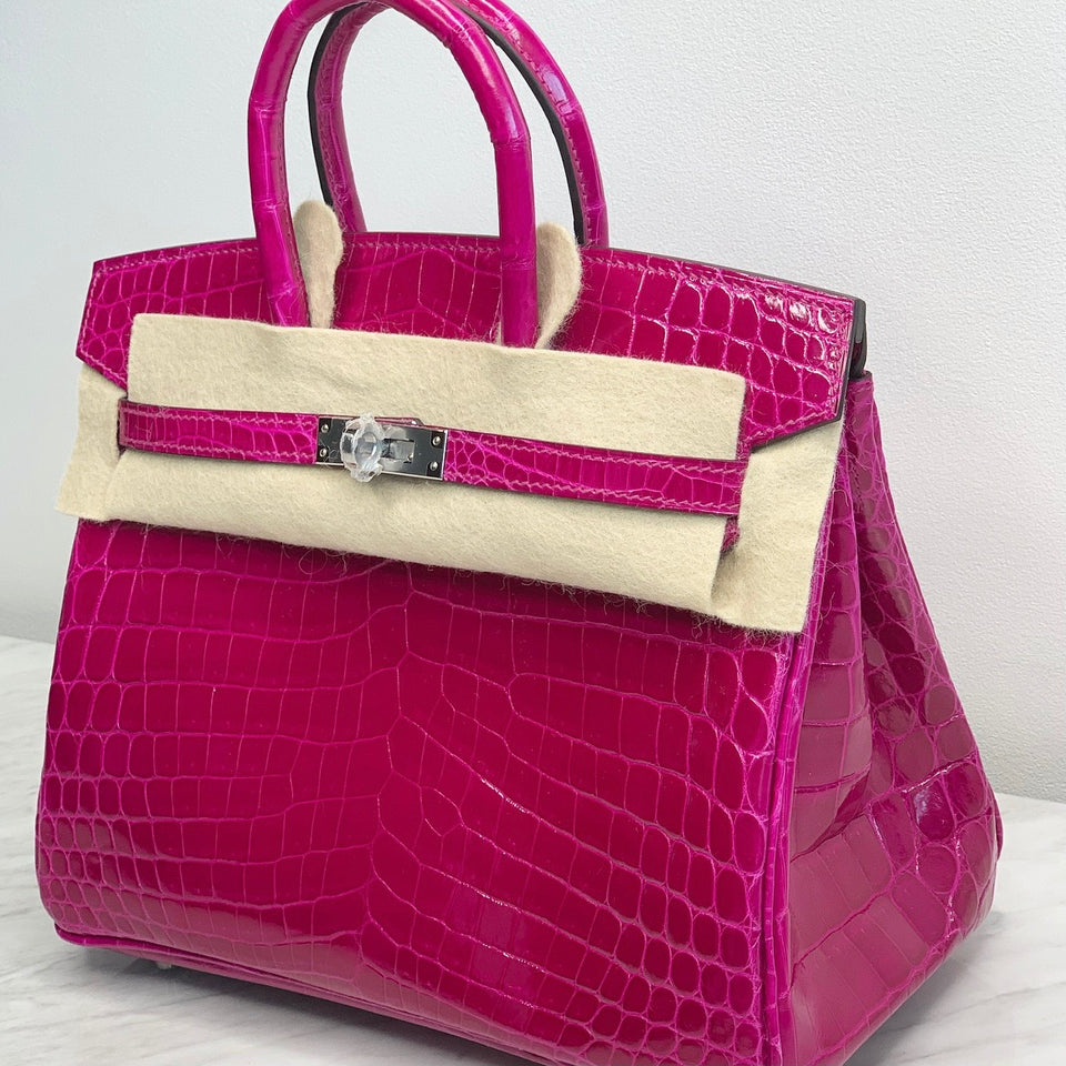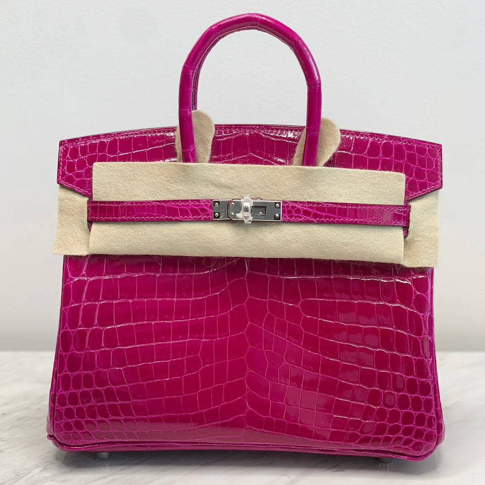 Hermès Birkin 25 Rose Pourpre Shiny Croc Palladium Hardware Bag