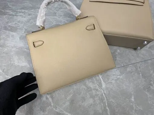 Hermes Kelly Epsom 25cm Bag Black Off-White
