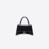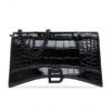 Made of patent calf leather with a crocodile skin effect, this design secures with a magnetic snap and showcases lamb leather details, a logo-shaped charm, an external slip pocket at the back, a detachable and adjustable shoulder strap, antiqued gold-tone metal hardware and one internal compartment with a slip pocket.