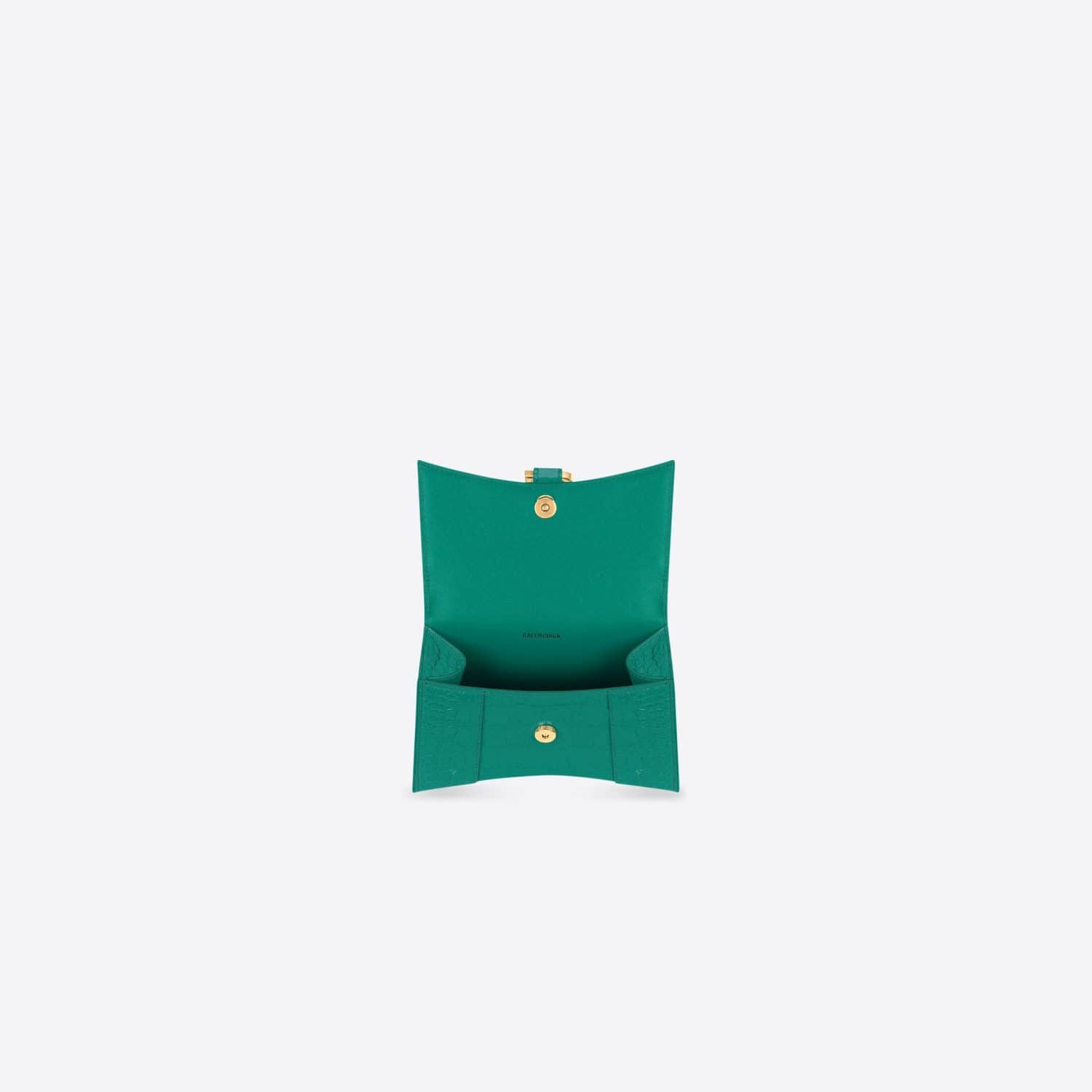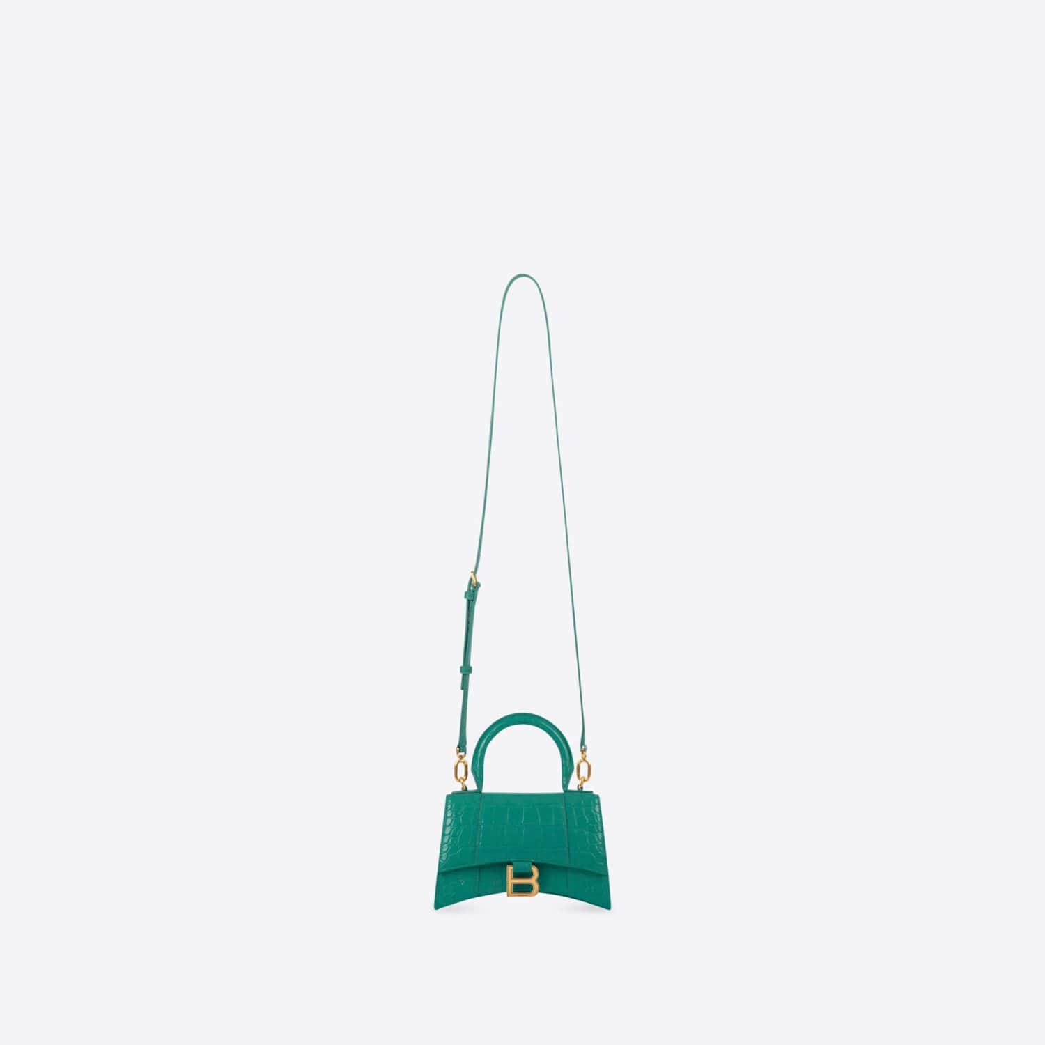 Made of patent calf leather with a crocodile skin effect, this design secures with a magnetic snap and showcases lamb leather details, a logo-shaped charm, an external slip pocket at the back, a detachable and adjustable shoulder strap, antiqued gold-tone metal hardware and one internal compartment with a slip pocket.