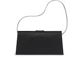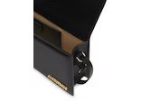 The Jacquemus Le Bambino Long Shoulder Bag (Black) primary pocket offers simple and safe object storage and an extra outer pocket. The designer’s logo is printed on the bag’s soft, beige material. It boasts a magnetic button clasp and a removable leather handle for added flexibility and a secure hold when carrying.