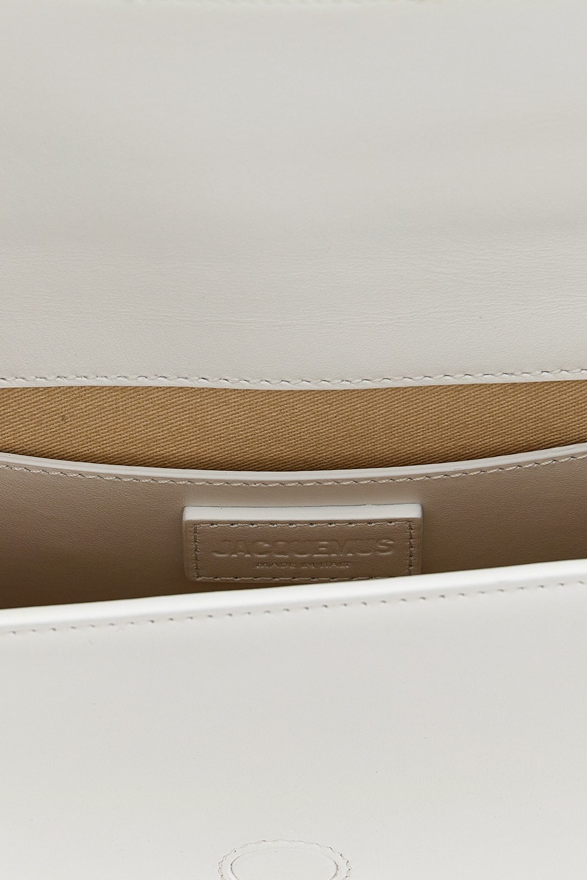 The Jacquemus Le Bambino Long Shoulder Bag (Black) primary pocket offers simple and safe object storage and an extra outer pocket. The designer’s logo is printed on the bag’s soft, beige material. It boasts a magnetic button clasp and a removable leather handle for added flexibility and a secure hold when carrying.
