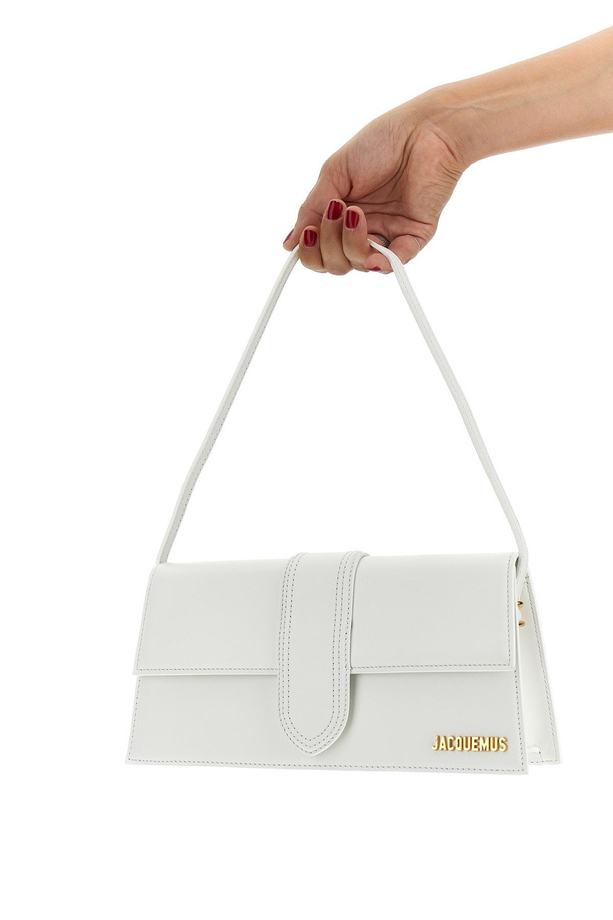 The Jacquemus Le Bambino Long Shoulder Bag (Black) is crafted from silky black leather. The satchel has an even surface thanks to the smooth black leather and gets gold-colored metal accents.