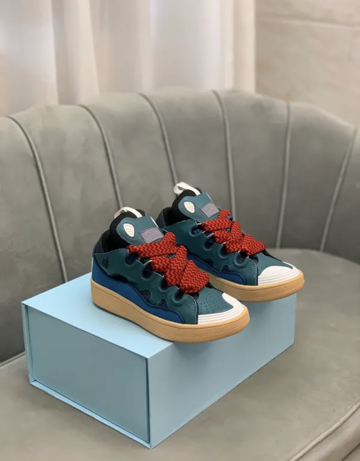Lanvin Curb Lace-Up Sneakers Dark Blue