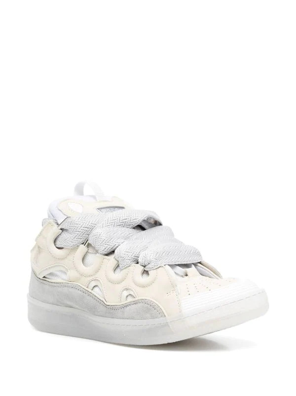 Lanvin Curb Lace-Up Sneakers White Grey