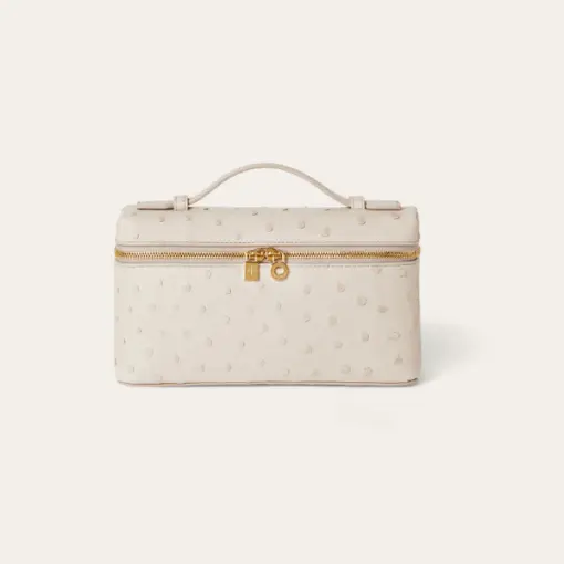 Loro Piana Extra Pocket L19 Ostrich Leather Bag Light Travertine White