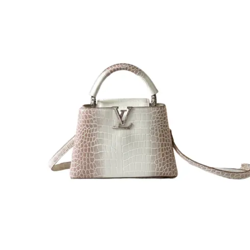 LV Capucines Bag White Pink Crocodile Leather