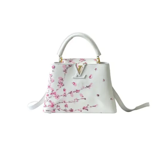 LV Capucines BB Handbag White Taurillon Leather Pink Cherry Blossom