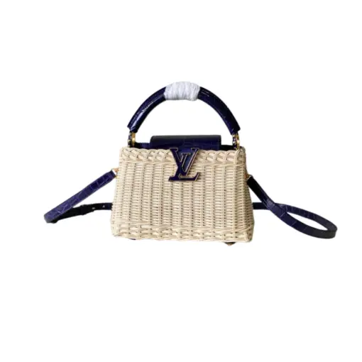 LV Capucines BB Mini Bag Meticulously Handwoven Rattan Purple Leather