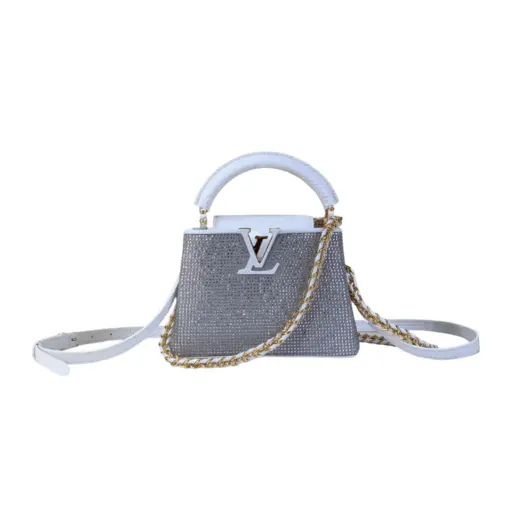 LV Capucines Mini bag white leather rhinestone