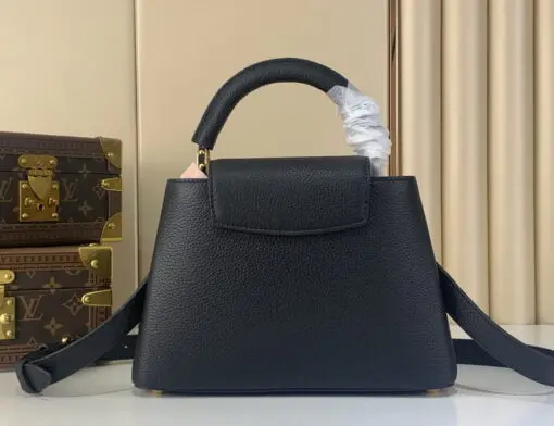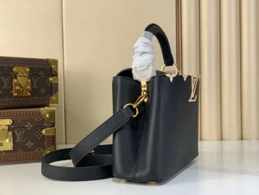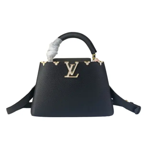 LV Capucines MM Handbag Taurillon Leather Black With Gold Toned Logo