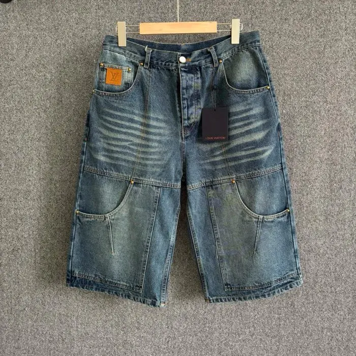 LV Cargo Denim Shorts Pocket Patch
