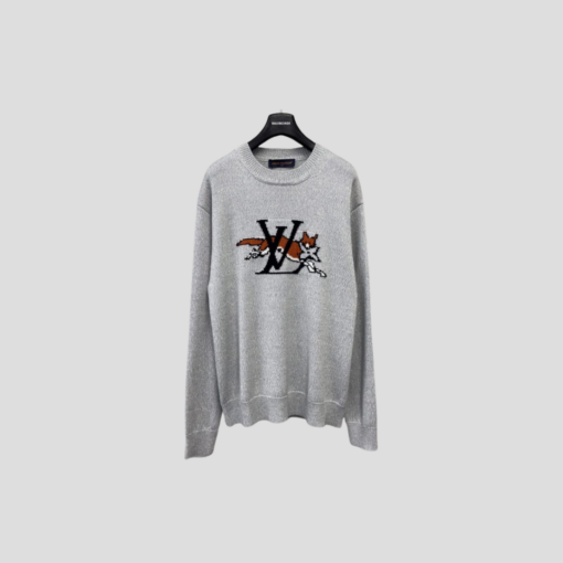 LV Chunky Wool-Cashmere Crewneck Sweater In Grey With A Tiger Motif