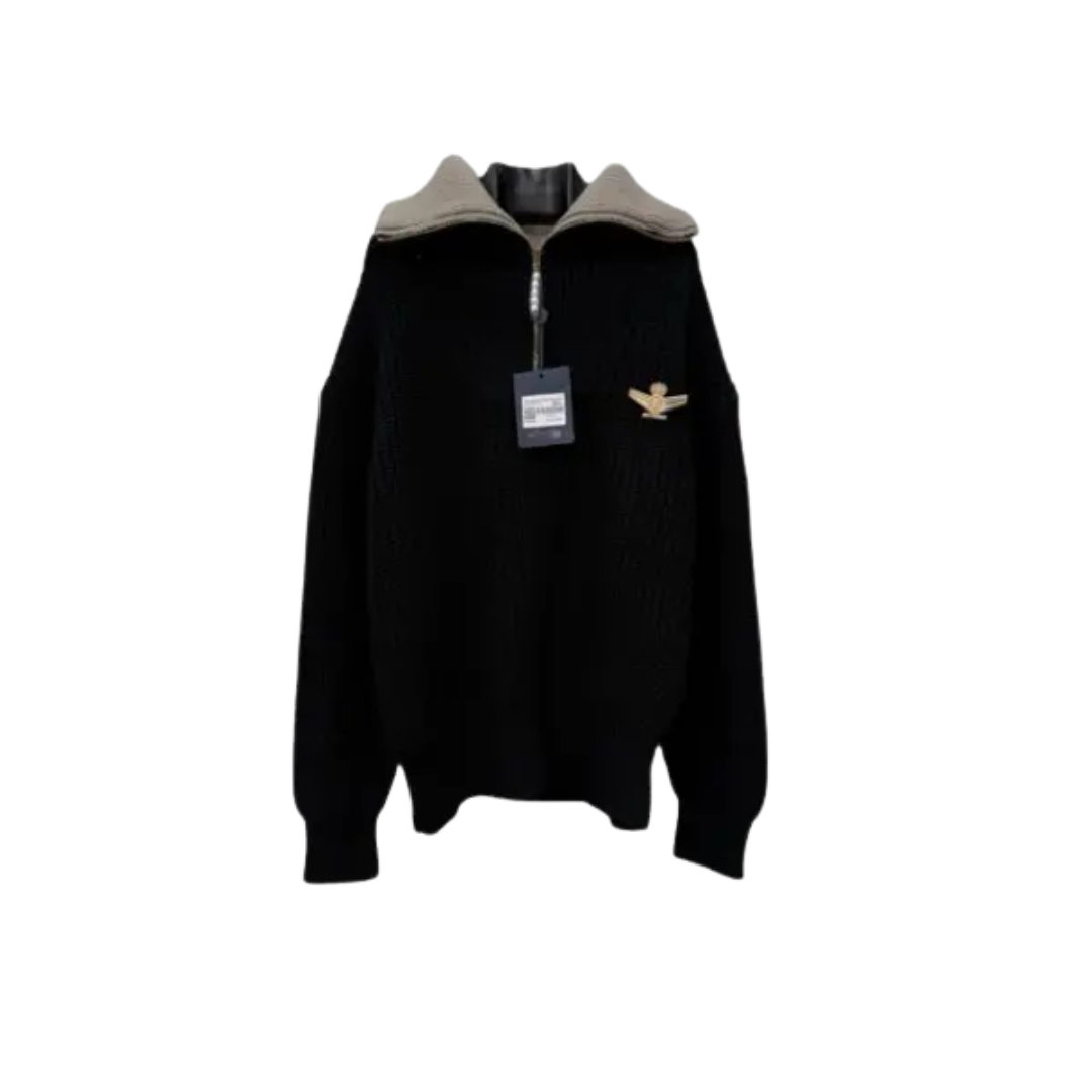 LV Chunky Wool Half Zip Pullover Black
