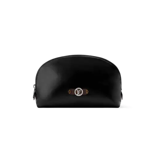 LV Cosmetic Pouch MM Black Lambskin Leather Silver