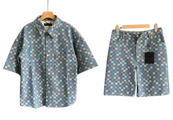 LV Damier Chambray Short-Sleeved Suite Set Multicolor