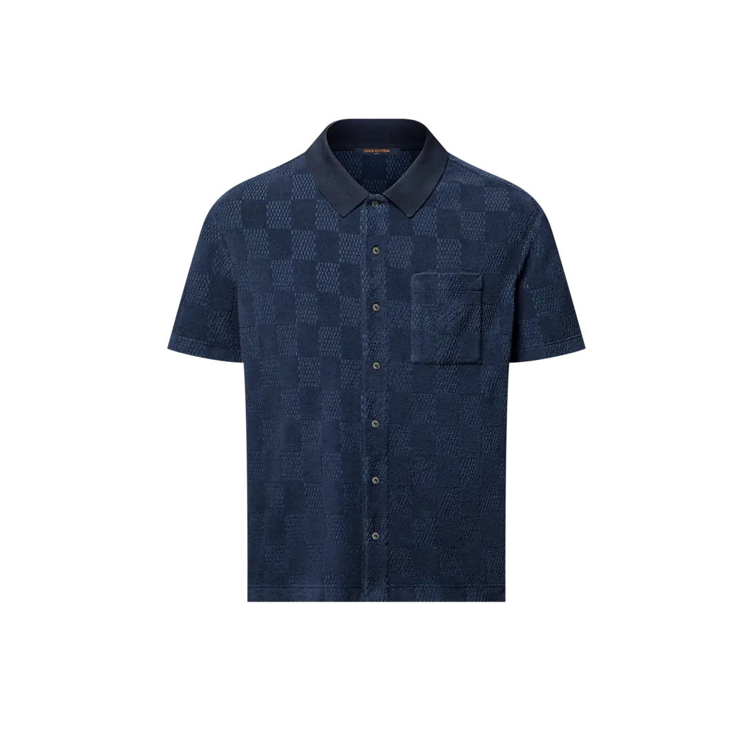 LV Damier French Terry Short-Sleeved Cotton-Blend Shirt