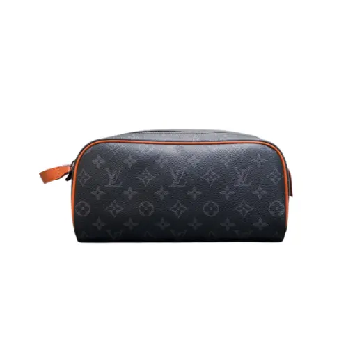 LV Dopp Kit Monogram Eclipse Canvas Bag Sunrise Orange