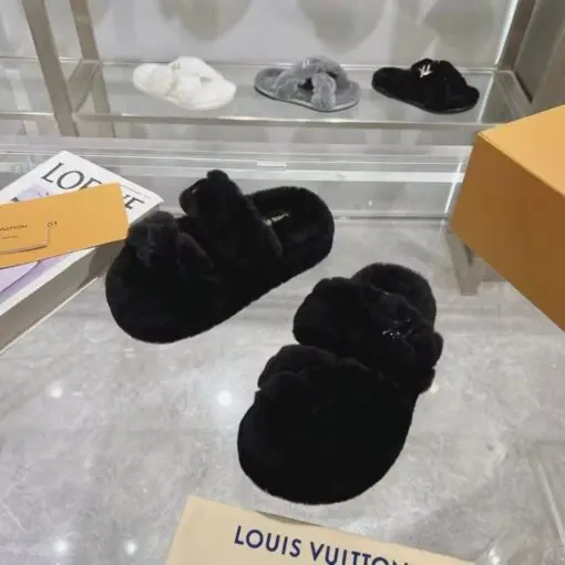LV Dreamy Flat Black Fur Slipper