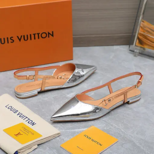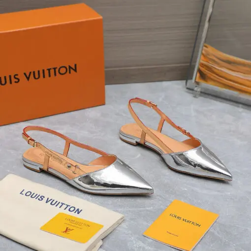 LV Elegant Pointed Toe Leather Sandel Silver