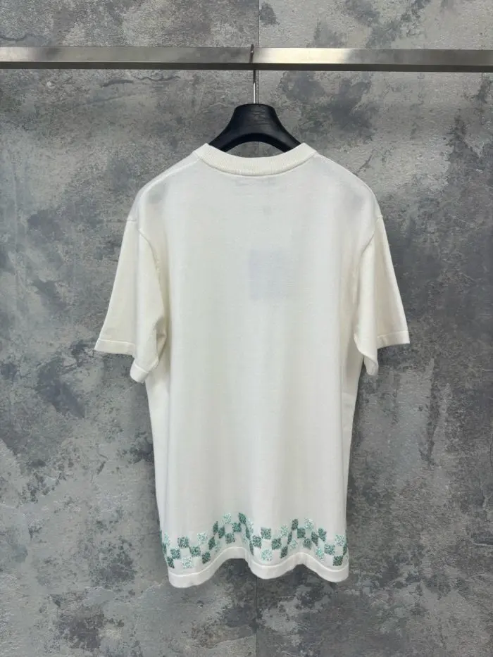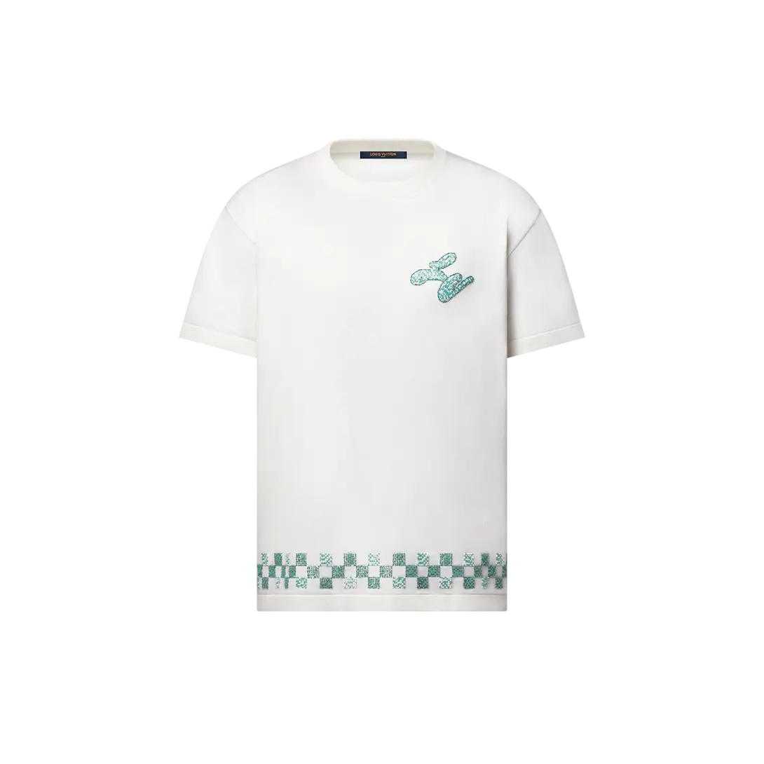LV Embellished Short-Sleeved Crewneck Milky White
