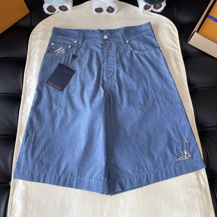 LV Embroidered Chambray Shorts Blue